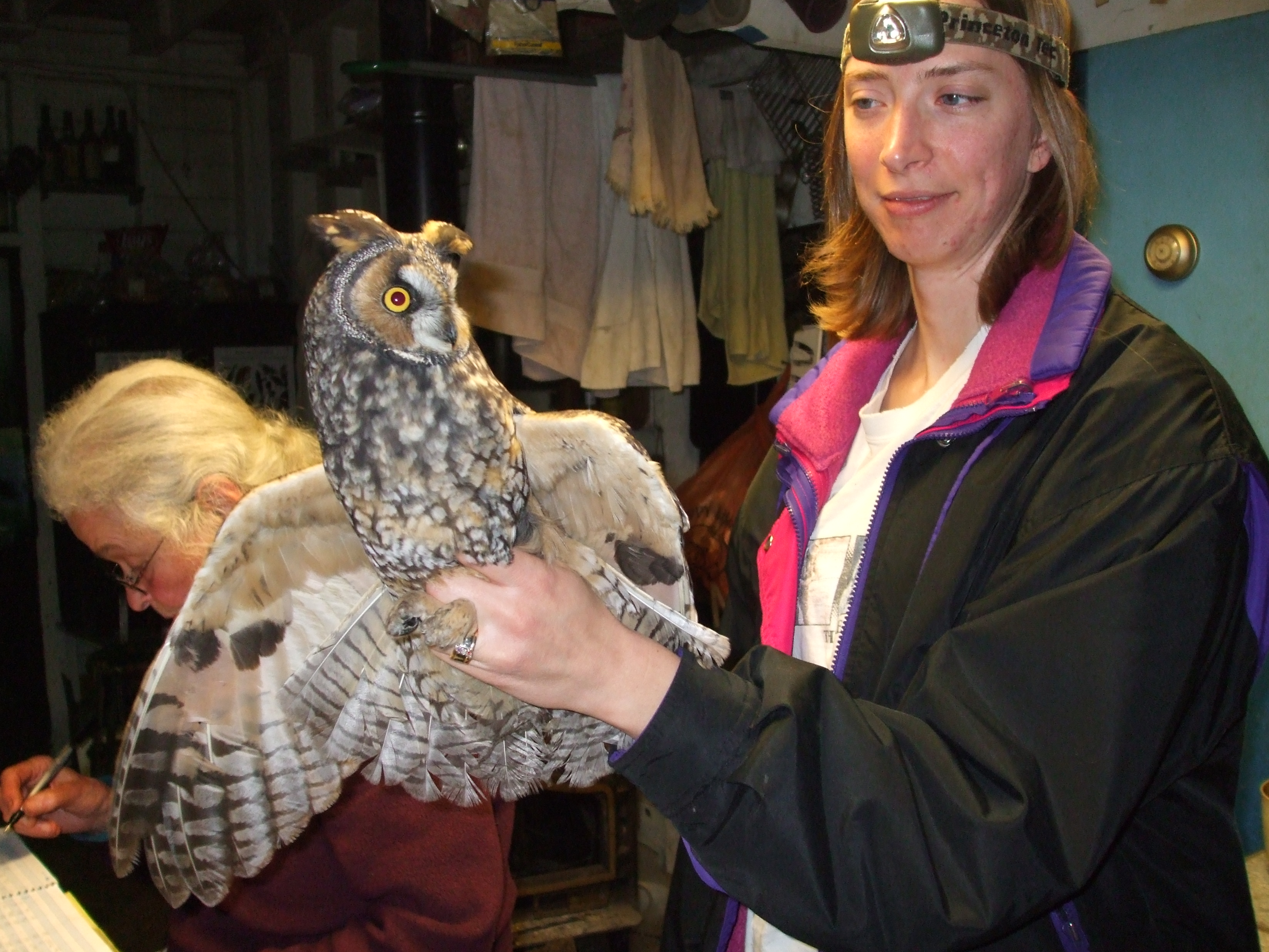 Volunteer Diane with Long-eared Owl – 2000sDan with Red-shouldered Hawk – 2000sSunset – 8/29/2006Setting out new mist net poles – 2000sSetting out new mist net poles – 2000sSetting out new mist net poles – 2000s