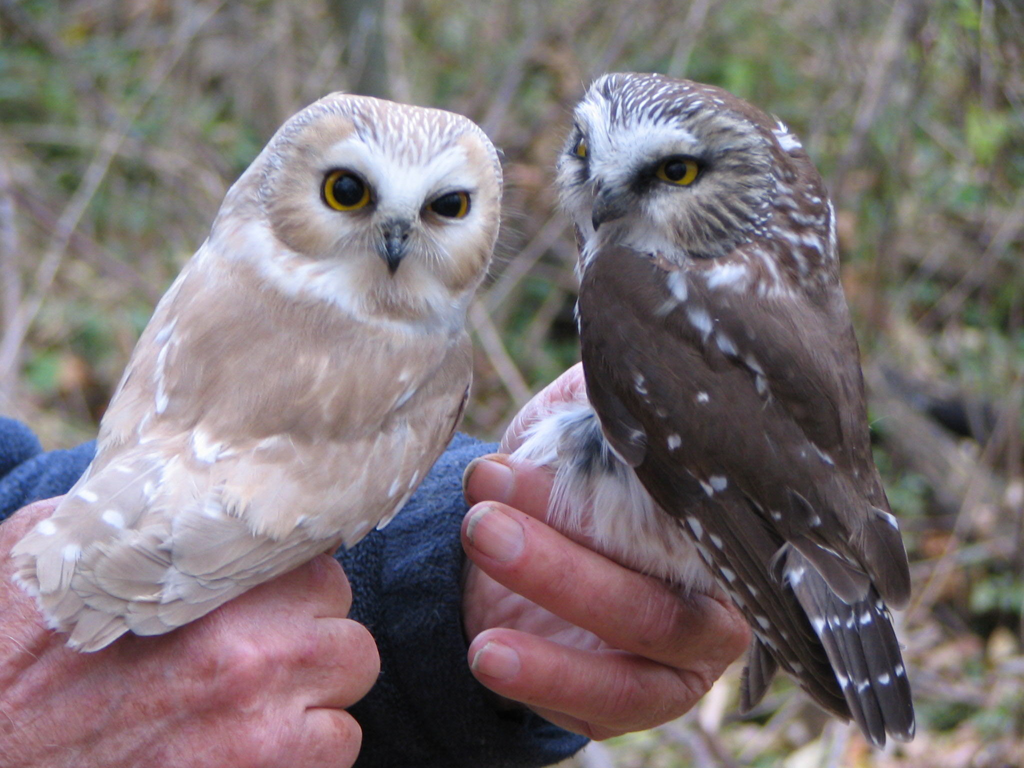 Adult American Goshawk – 2000sProcessing – 1990sFrost on the mist nets – 2000sDan with Peregrine – 10/17/2006Pale and normal colored NSWOs – 2000sFall at the station – 2000s